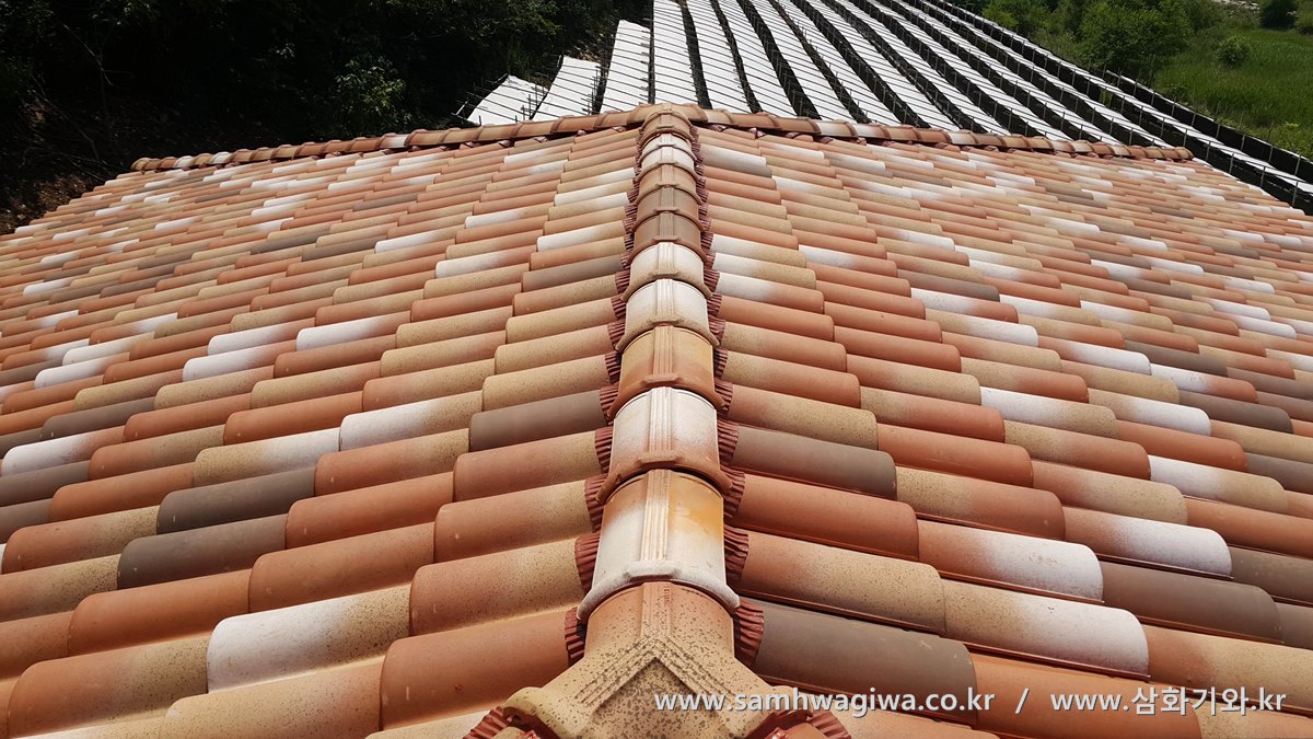 이번 현장에 사용된 기와는 마자론 기와의 뉘앙스 제품입니다. 알록달록한 색상이 특징인 기와로 중간중간 흰색의 포인트가 화려함과 화사함을 더해주는 베스트셀러 기와입니다. 뉘앙스 제품에 대해 자세히 알아보시려면 아래 링크를 참조하세요.