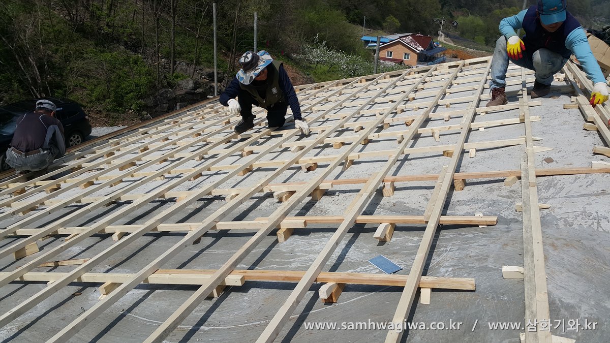 지붕면이 중간에 불룩하게 솟은 곳에는 세로상을 놓지 않고 가로상만 설치해야 수평을 맞출 수 있습니다.