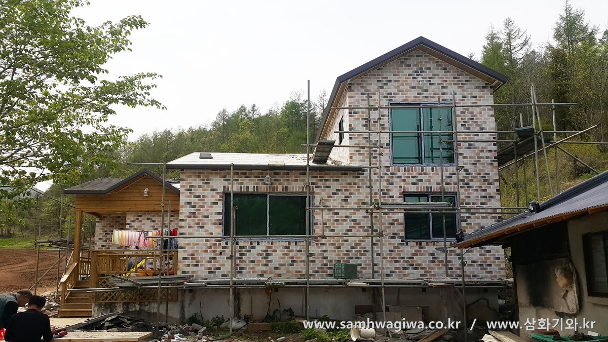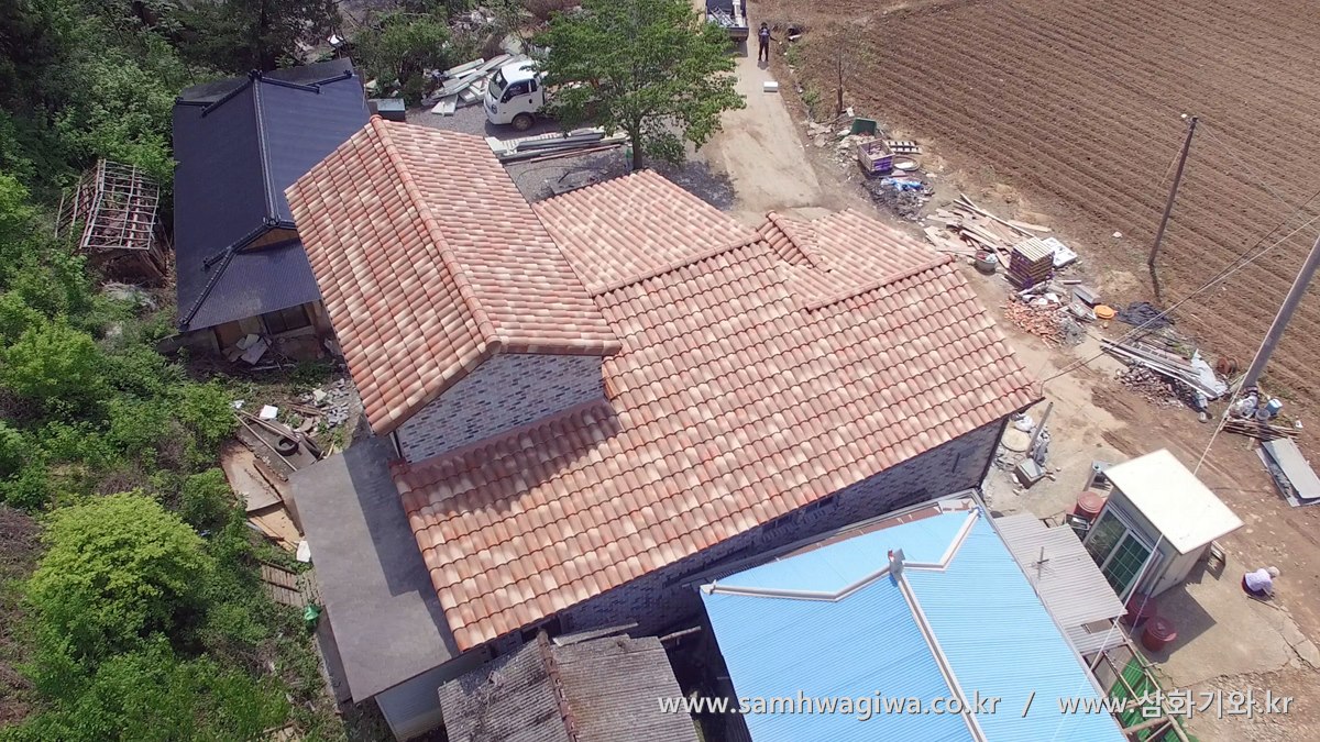 시공이 모두 끝난 후의 사진입니다. 시공은 까다롭고 어려웠지만 예쁘고 아름다운 집으로 변모했습니다. 기와의 색과 벽돌이 잘 어우러져 산뜻하고 밝은 느낌을 주고 있습니다.