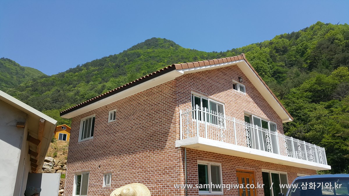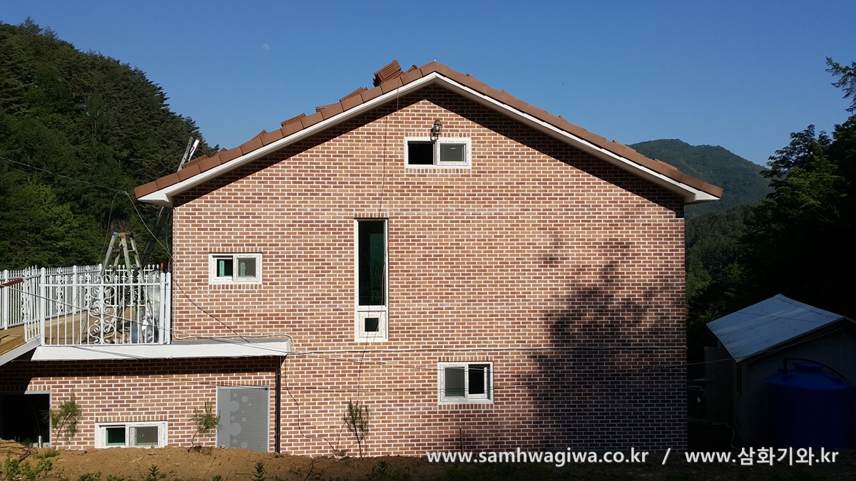 시공을 모두 마친 후의 사진입니다. 고동색 계열의 벽돌이 기와의 색상과 어우러져 근사하고 중후한 느낌의 주택이 탄생하였습니다.