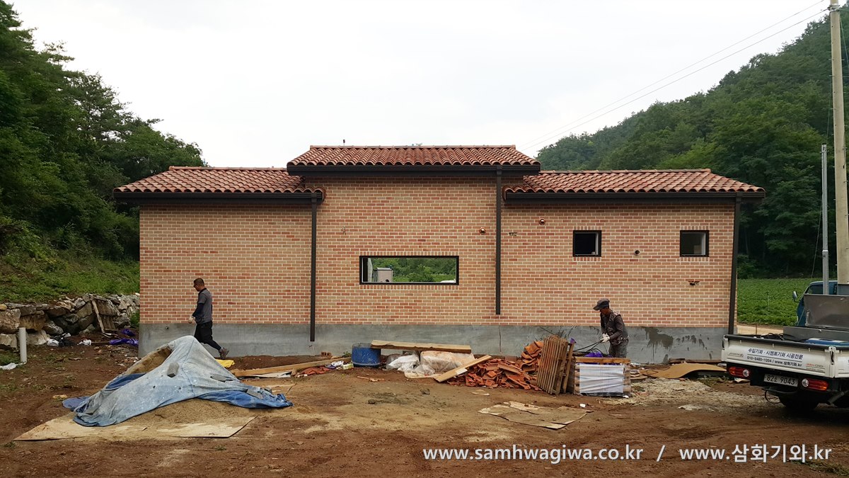 태양열 패널 지지대와 궂은 날씨 등으로 비교적 작업은 어려웠지만 무사히 깔끔하게 잘 마무리되었습니다. 벽체의 색상과 기와의 색상이 잘 어울려서 아름다운 주택으로 변모한 모습입니다.