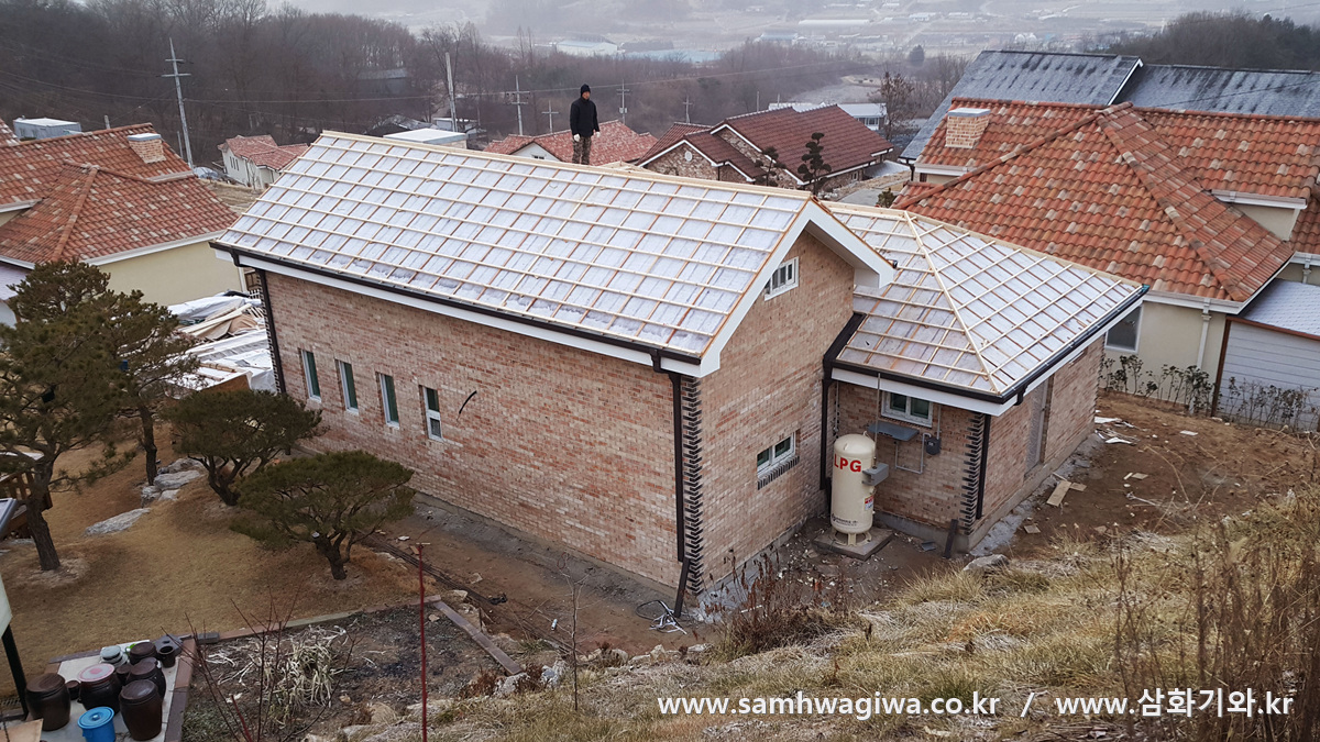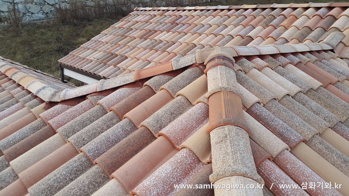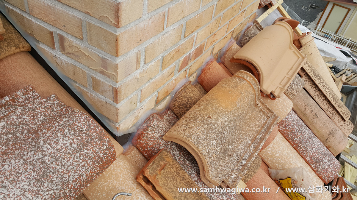 이번 현장에 사용된 기와는 마자론 기와의 “밀레나리아”라는 제품입니다. 기와 표면에 빗살무늬가 처리되어 독특하고 고급스러운 느낌을 주는 기와로서 파격적이면서 다채로운 색상이 화려한 느낌을 주는 최고급 기와입니다. 밀레나리아 제품에 대해 자세히 알아보시려면 아래 링크를 참조하세요.