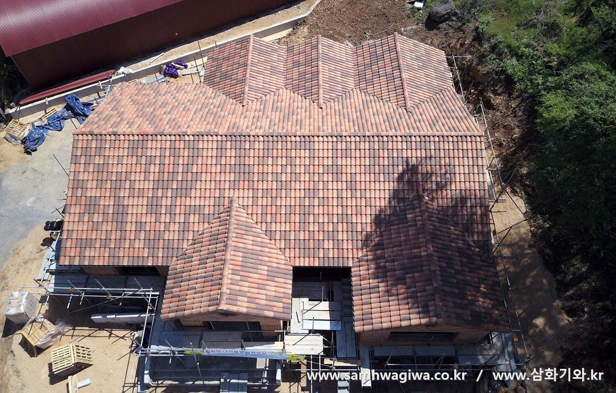 이번 현장에 사용된 기와는 마자론 기와의 엘레강스 제품입니다. 이름처럼 우아한 느낌의 기와로서 흰색 계열의 색상을 배제하여 전체적으로 중후하고 기품이 있는 느낌이 특징인 스테디셀러 기와입니다. 엘레강스 제품에 대해 자세히 알아보시려면 아래 링크를 참조하시고 VR 사진도 감상하세요.