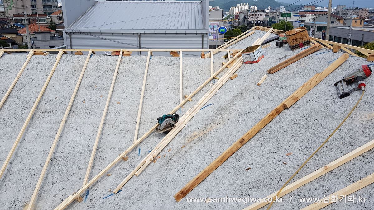 세로상이 하나씩 설치될 때마다 점점 지붕의 모습이 갖춰지고 있습니다.