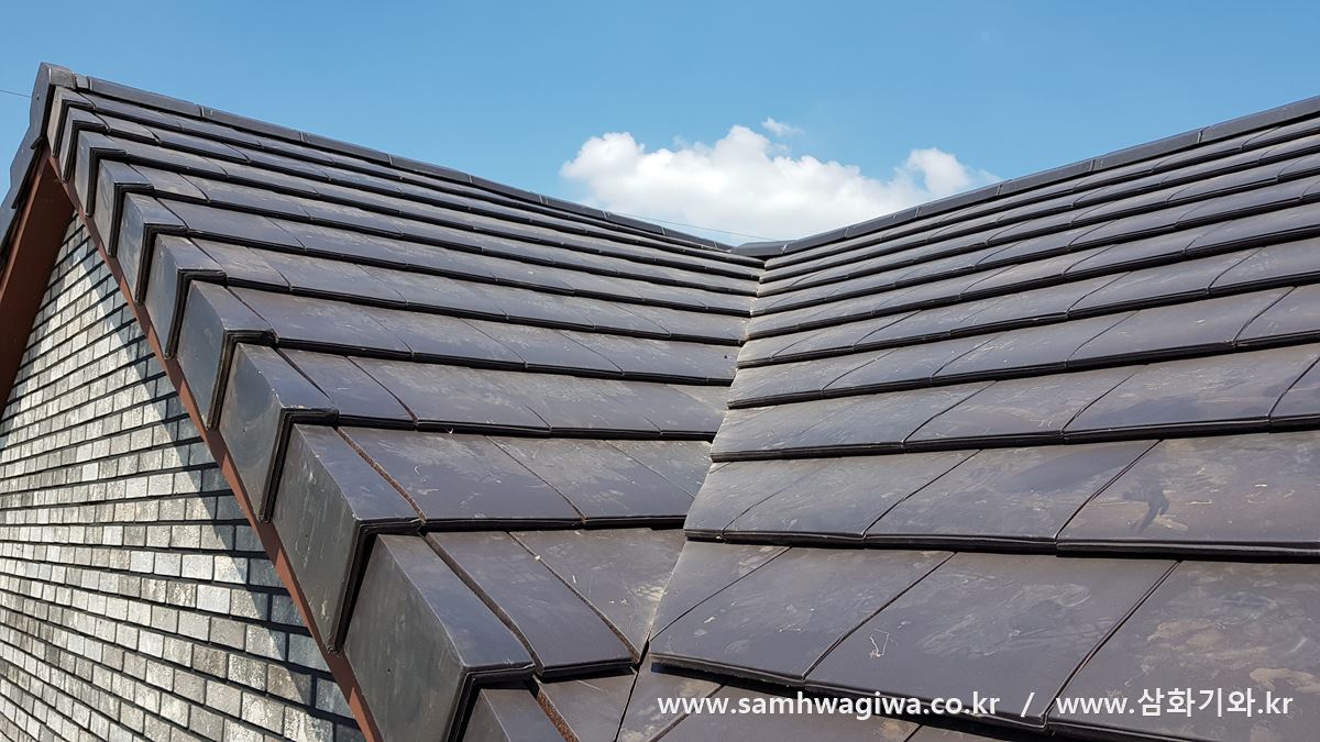이번 시공에 사용된 기와는 프랑스 모니어기와의 시그니 평기와로서 심플하고 담백하면서도 깔끔한 느낌을 주는 최고급 점토기와입니다. 색상은 진한 검정색이며 무광과 유광의 중간 느낌을 주는 질감을 가지고 있는 것이 특징입니다. 자세한 제품 설명은 아래 링크를 참고하세요.