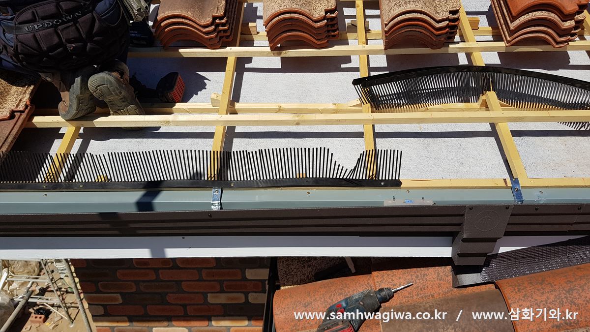 새막이도 설치해 줍니다. 새막이가 없으면 기와 밑은 금방 새들의 둥지가 되어버리기 때문에 반드시 설치해야 합니다.