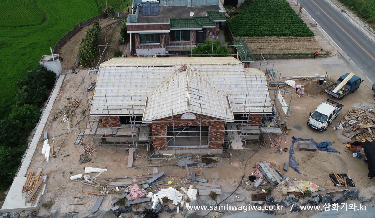 이번 시공 현장은 제천시 고암동 고래미마을에 위치한 개인주택 신축 현장입니다. 철근 콘크리트 골조의 단층 주택으로서 지붕의 모양은 변형된 T자형 구조입니다.