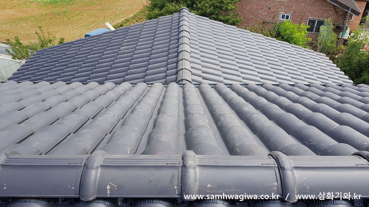 지붕면의 단차가 크기 않으니 여러 모로 손이 많이 갑니다. 절단해야 할 기와도 많고 방수에도 신경이 무척 많이 쓰입니다.