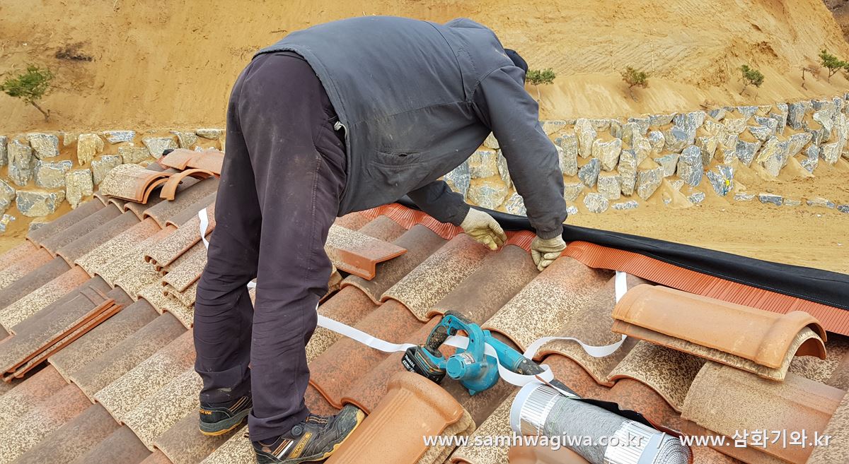 안전하게 기와 인양까지 끝낸 후의 모습입니다. 이번에 사용될 기와는 마자론의 엘레강스 모델입니다.
