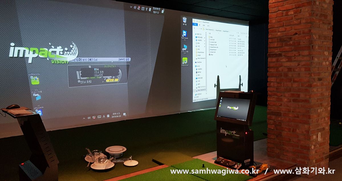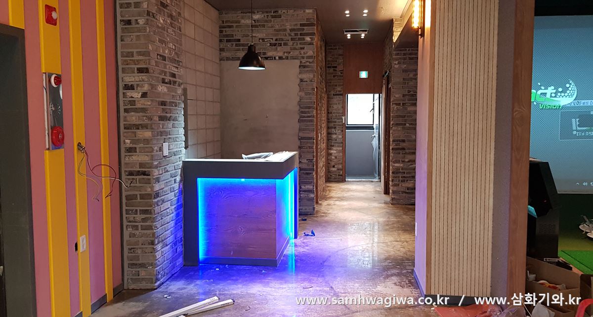 건물 내부에는 인테리어 작업이 진행 중입니다. 스크린골프장으로 사용될 건물이라 프로젝터와 스크린을 비롯, 각종 기기들의 셋팅이 한창 진행 중인 모습입니다.