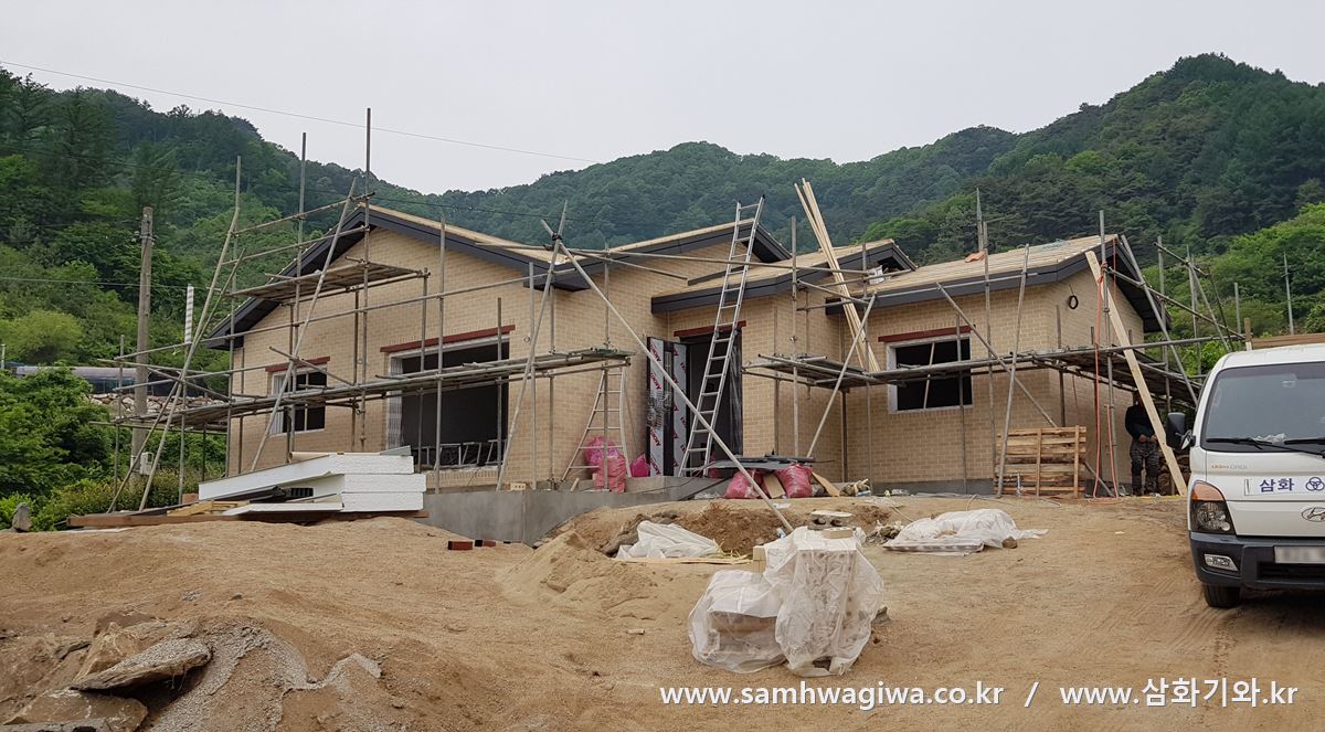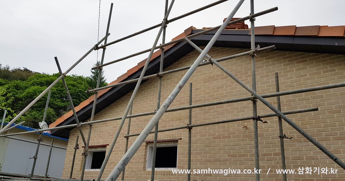 외벽과 기와가 만나는 인접 부분은 미리 L자형 후레싱을 심어 놓아 빗물이 흐를 유도로를 만들어 줍니다.