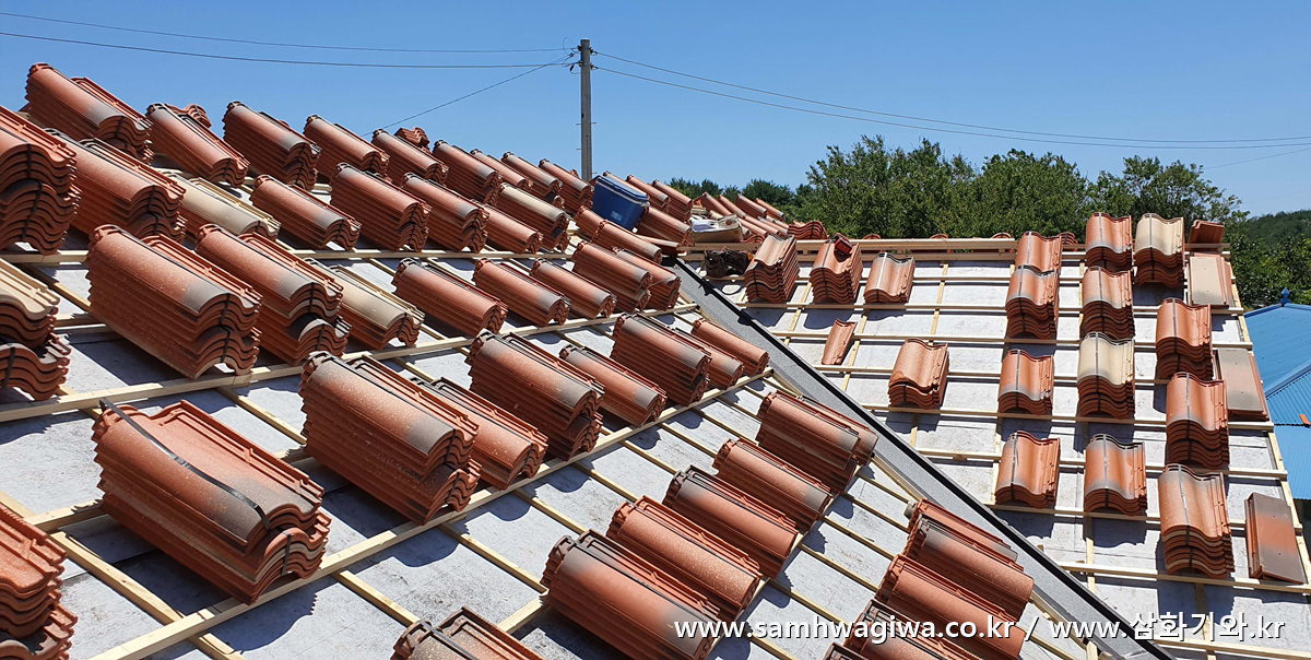 가로상 부착과 기와골의 후레싱 설치도 끝났네요. 이제 물받이 거터만 부착하면 기와를 받을 준비가 끝납니다.
