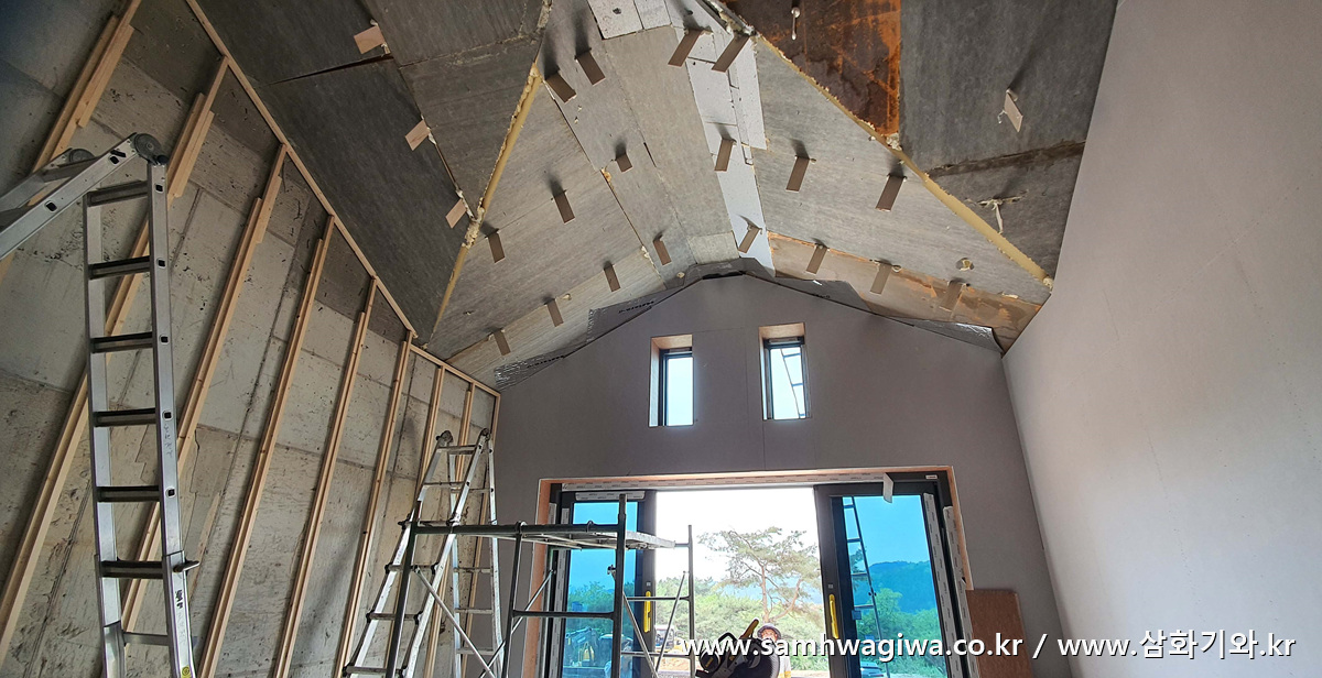 물받이 거터가 예쁘게 완성되었습니다. 이제 본격적인 기와 시공을 시작할 준비가 끝났습니다.