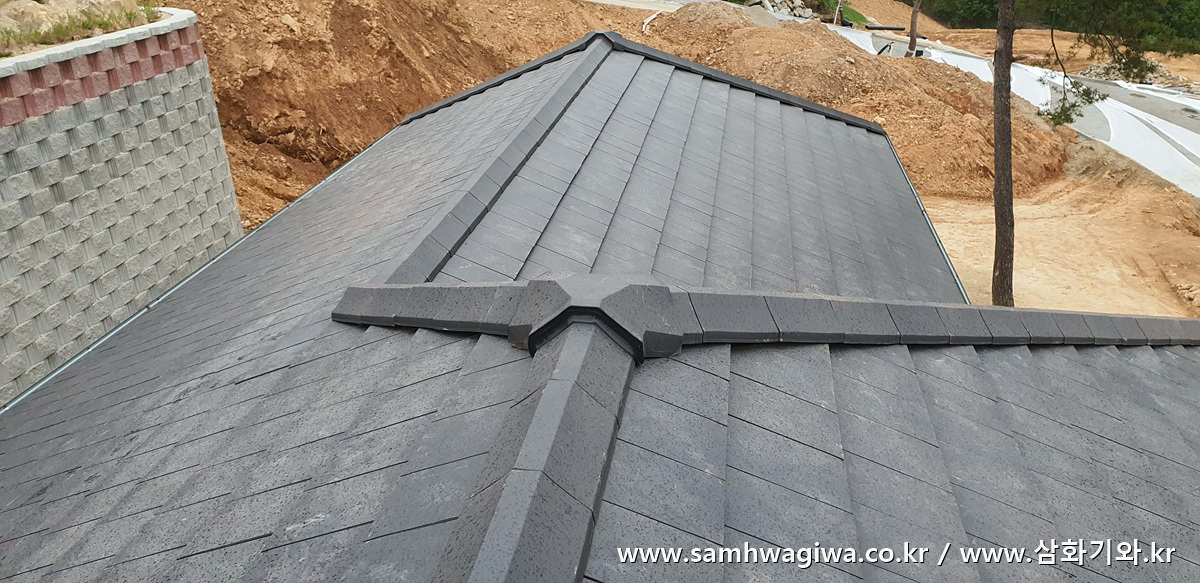 용마루와 삼방향 부속이 반듯하고 깔끔하게 잘 시공되었습니다.