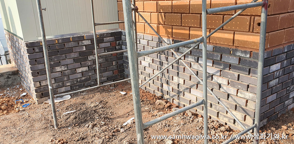 이번 현장에 사용된 기와는 마자론 기와의 검정색 기와로서 일반 붉은 점토기와에 검정 도료를 칠한 것이 아니라 밤색 기와를 베이스로 컬러를 입힌 기와입니다. 따라서 단색 기와이지만 가장 고급 기와에 속하며 가격 또한 일반 변색 기와보다도 높습니다. 무광택으로 처리된 기와의 표면은 중후하고 깊이 있는 느낌을 주어 한식 스타일의 집이나 현대적인 건축물 모두에 무척 잘 어울리며 벽체 색깔에도 크게 영향을 받지 않아 다양한 스타일의 외벽에 폭넓게 어울리는 장점이 있습니다.
