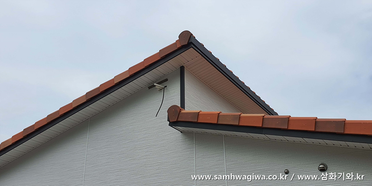 윗지붕의 외쪽지붕에도 용마루 기와가 일렬로 예쁘게 시공되어 있습니다.
