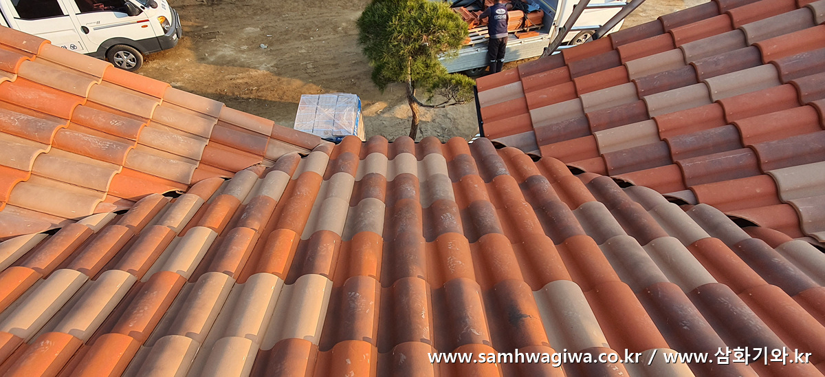 용마루 부위에는 기와를 절단하여 마감해 줍니다.