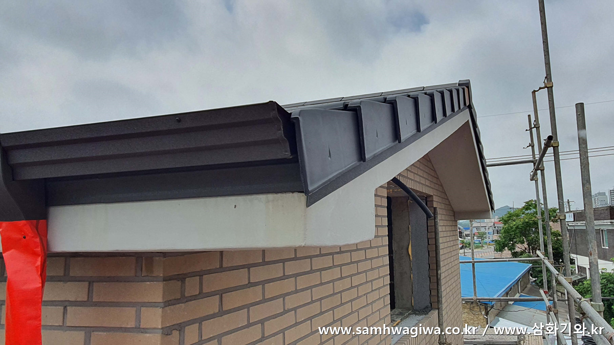 물받이 거터도 부착이 완성되었습니다. 이번 현장은 평기와를 시공할 예정이므로 새막이는 설치하지 않습니다.