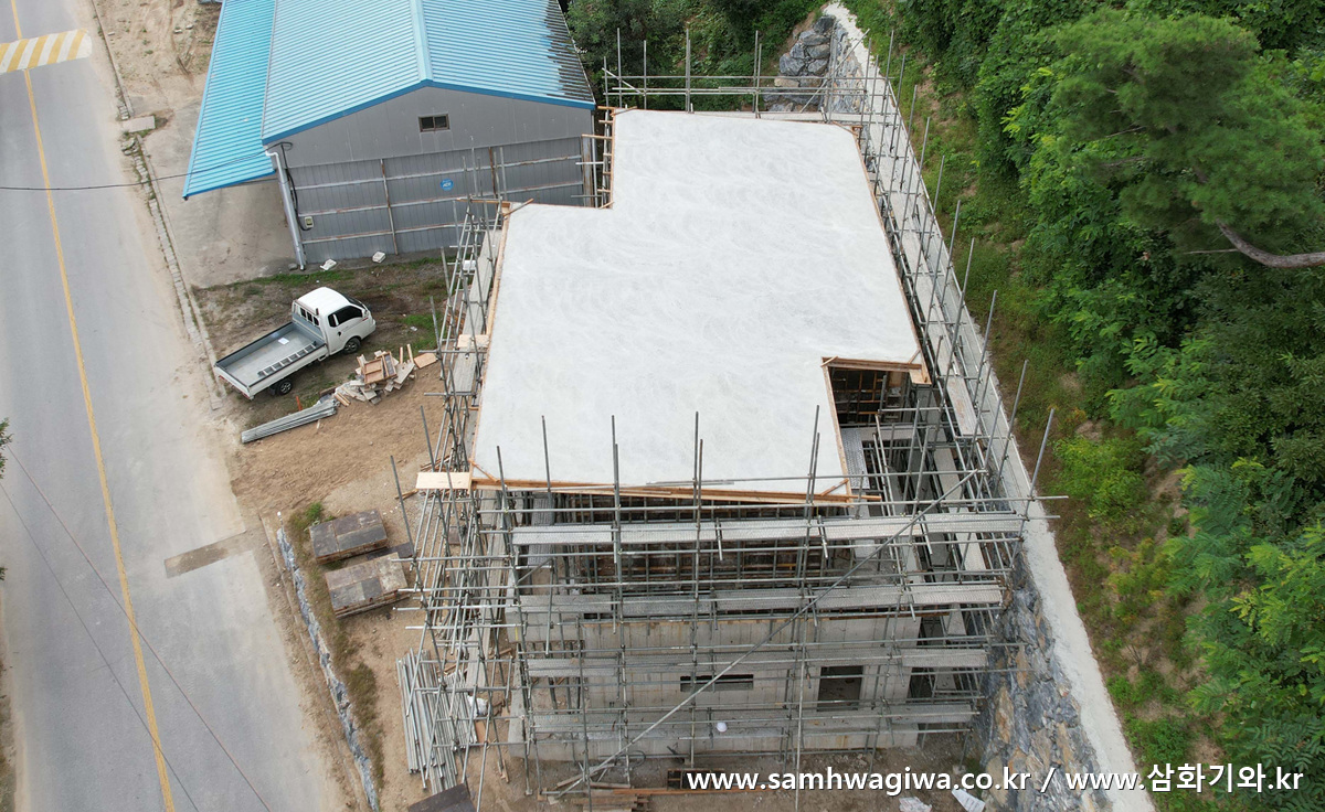 이번 현장은 제천시 두학동에 위치한 개인주택 신축 현장입니다. 철근 콘크리트 골조의 2층 주택으로서 지붕의 모양은 외쪽지붕 형태입니다.