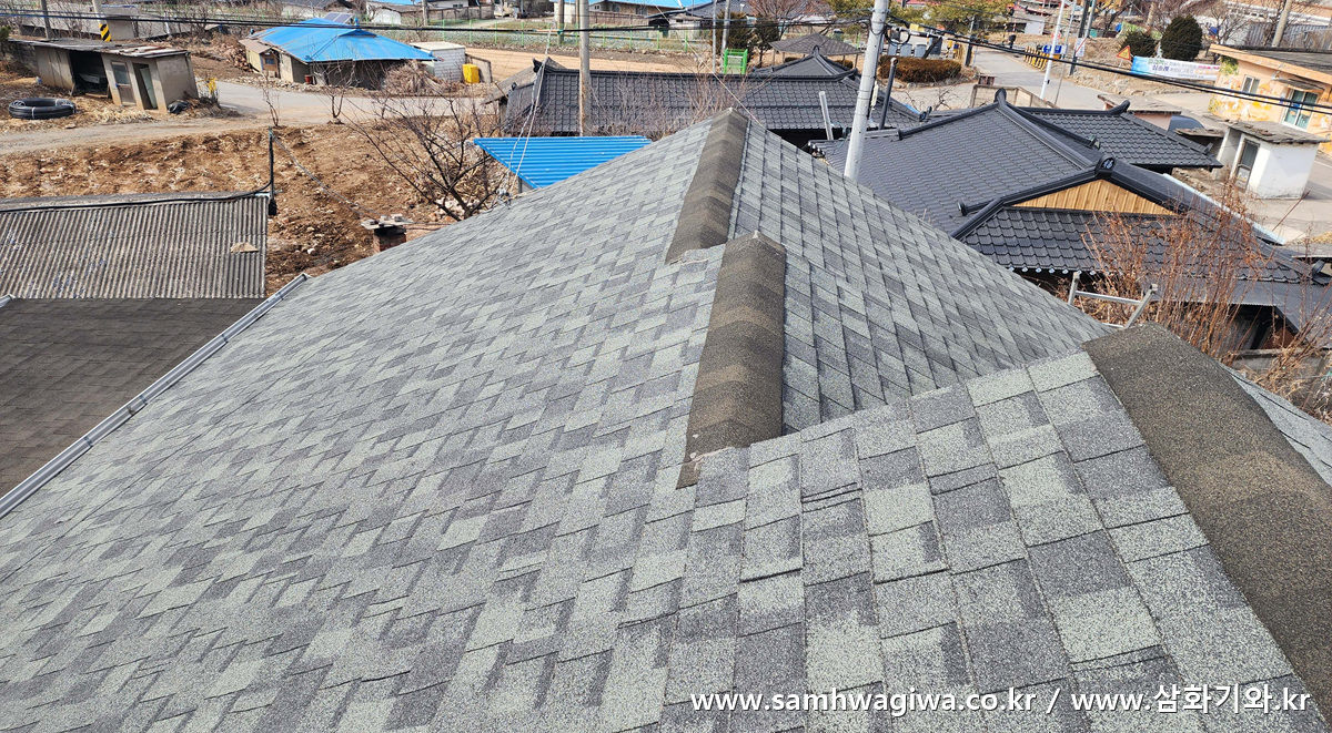 이번 현장은 강원도 정선군 신동읍 천포안길에 위치한 개인주택의 지붕 개축 현장입니다. 아스팔트 슁글로 마감되어 있는 기존 지붕을 수입기와로 대체할 예정입니다.