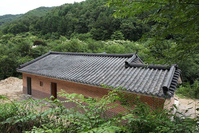 한식형 기와란 전통 방식의 점토 한식 기와의 형태를 시멘트 성형에 알맞도록 개량한 기와로서 암기와 2장과 숫기와 1장을 하나로 통합한 형태의 기와입니다. 120톤의 고압으로 성형하므로 조직이 치밀하고 방습성이 뛰어나며 뛰어난 내구성을 자랑합니다. 특히 3장을 하나로 줄여놓은 기와이므로 무게가 상대적으로 가벼워 전통 한식 기와의 단점이었던 지붕 하중의 무게를 크게 줄일 수 있으며, 시공이 쉽고 간편하므로 시공 속도가 매우 빠릅니다. 또한 기와 매수가 적게 소요되므로 전통 한식 기와에 비해 시공비를 획기적으로 줄일 수 있으면서도 한옥 지붕의 멋을 그대로 느낄 수 있다는 장점이 있습니다.